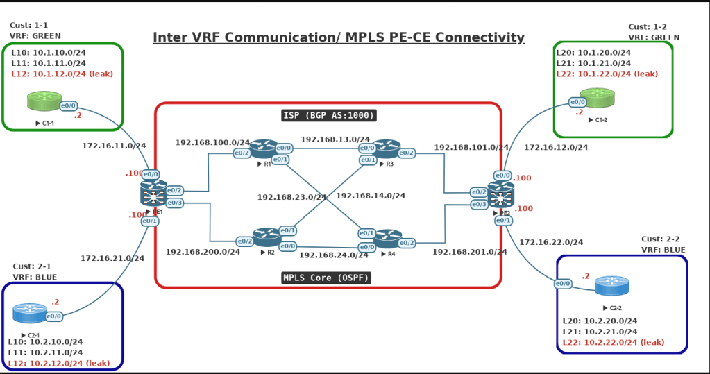 I hope you have a clear understanding of how MPLS PE-CE connectivity works along with Inter-VRF communications.